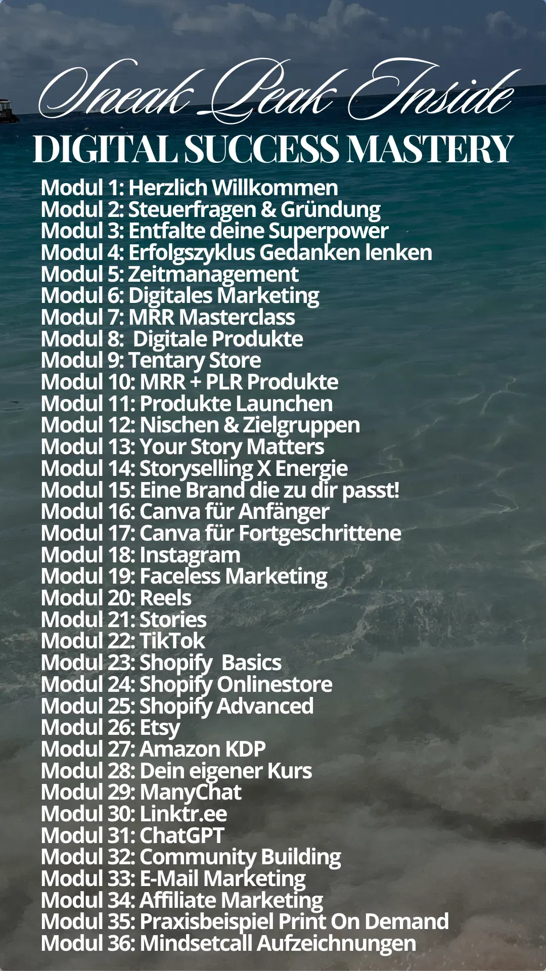 Digital Success Mastery ermöglicht es dir, tiefe Einblicke in deine Persönlichkeit zu gewinnen und deine individuellen Talente sowie dein wahres Potenzial zu entfalten. Er ist eine Reise zur Selbstentwicklung, die dich lehrt, zu wachsen, deine Fähigkeiten zu vermarkten und in der digitalen Welt erfolgreich zu sein.